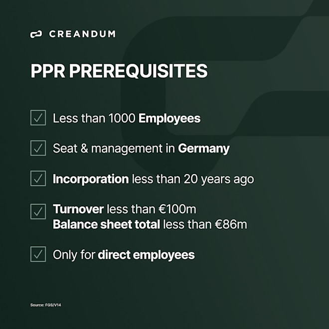 Profit Participation Rights (PPR) is a financial instrument held individually by the employee which allows holders to receive a share of the company’s profits or liquidation proceeds. The key benefit of the approach is that it combines the advantages of the new tax treatment (ie. capital gains) with the simplicity of ‘virtual shares’.