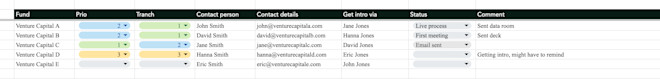 List all the funds you have been in touch with If you have been in touch with investors from funds before, dig up who they were and when the interaction took place. Adding those who reached out to you but you didn’t meet is also a great starting point. All these funds have shown some interest which is the best starting point for a conversation.