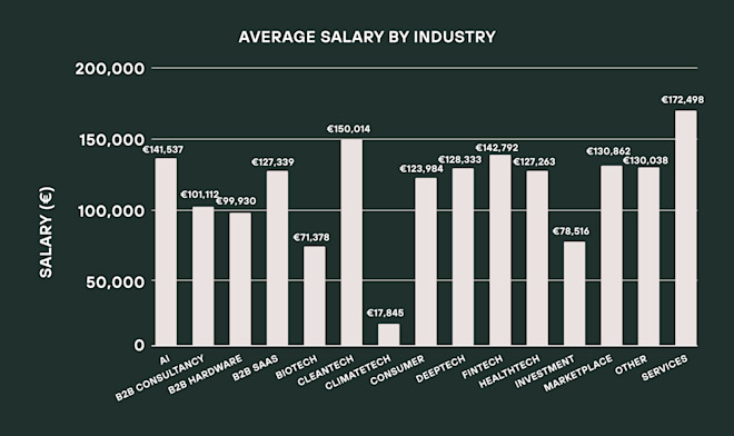 While AI-native startups are now regularly raising megarounds in the hundreds of millions (sometimes billions) of dollars, those zeroes are yet to materialise in the pay packets of AI-first founders. As most of those founders will admit, the public perception of AI funding rounds is skewed by headline-grabbing raises in the US, such as those from Thinking Machines and Scale AI. The majority of rounds are much smaller. Regardless, in Europe, founders of AI-first startups can still take home a median salary of €122,282. But they are pipped as overall median top earners by founders working in CleanTech (€142,464) and FinTech (€142,792).