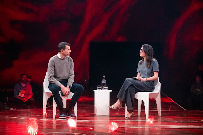 Maria and Fredrik on stage at SLUSH in Helsinki in 2024